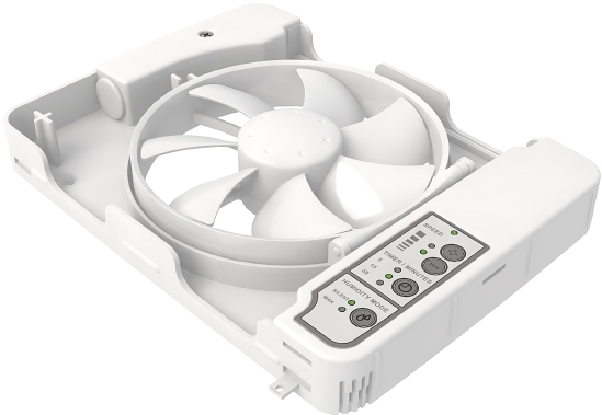 Автоматическая система определения влажности. Впервые представлен полностью автоматический контроль влажности, то есть, вентилятор определяет время включения, когда его работа необходима. Встроенная функция втягивания воздуха означает, что вентилятор постоянно проверяет необходимость включения. Если вентилятор может понизить уровень влажности в воздухе, он запускается автоматически. Для вентилятора также предусмотрено 2 режима производительности для контроля влажности; бесшумный и максимальный.